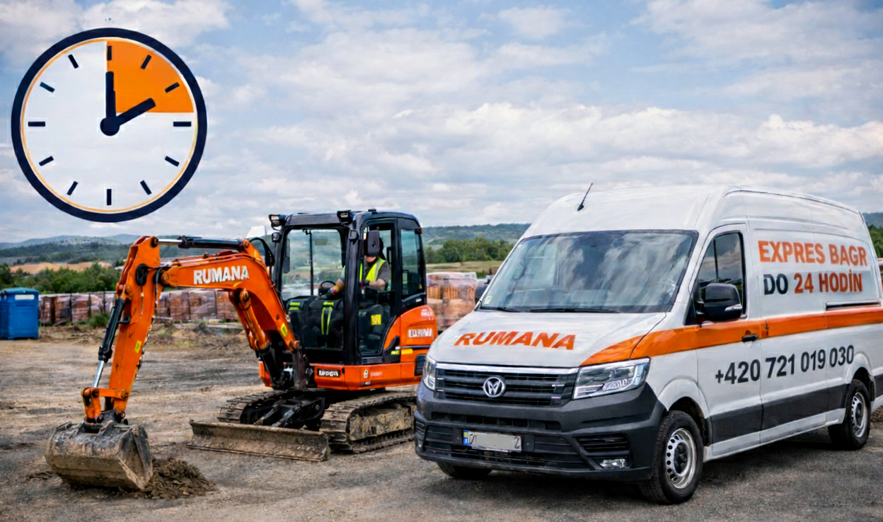➡️ Potřebujete bagr nebo minibagr v Olomouci, Brně či Praze? Rumana je řešení!