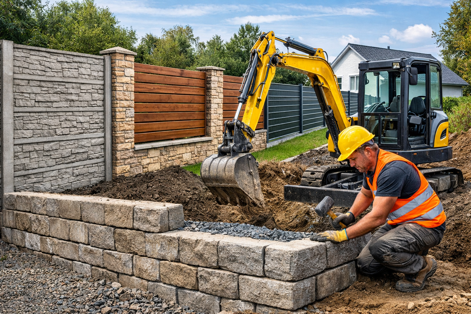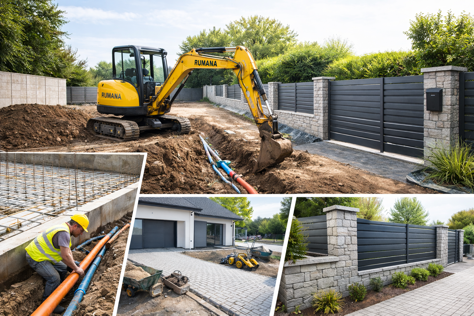 Společnost RUMANA – zemní práce realizuje ploty a opěrné zdi na klíč pro rodinné domy, firmy, developery i obce. Zajišťujeme kompletní řešení od výkopových prací, přes betonáž základů až po finální montáž plotů a terénní úpravy.